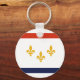 Chaveiro de botões com pavilhão da cidade de Nova Orleans, Louisiana; bandeira branca com listras vermelhas e azuis e três ouros de fleur-de-lys
