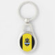 Chaveiro com pavilhão da cidade de Pittsburgh, Pensilvânia; bandeira com três bandas verticais de preto e amarelo com ilustração do castelo e do escudo no centro