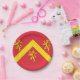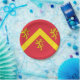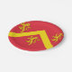 Placa de papel com design com uma bandeira do condado histórico de Anglesey, no País de Gales, na Grã-Bretanha Excelente; bandeira vermelha com fevron amarelo e três leões; os braços atribuídos de Hwfa ap Cynddelw, o crachá tradicional do condado