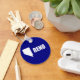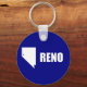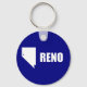 Chaveiro de botões com bandeira da cidade de Reno, Nevada; bandeira azul com forma branca de Nevada com estrela simbolizando a localização de Reno dentro do Estado