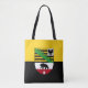 Saco com bandeira variante da Saxónia-Anhalt; design com duas bandas horizontais de amarelo (ouro) e preto e com casaco de braços do Estado no centro