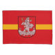 Mala de lanterna com pavilhão de Vilnius, capital da Lituânia; bandeira vermelha com faixa amarela e casacos de armas com dois leões ouro segurando um escudo no centro