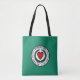 Saco com bandeira da cidade de Worcester, Massachusetts; bandeira verde com emblema branco com coração vermelho no centro