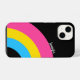 Bonito presente de caso no iPhone 14 do orgulho pansexual em um fundo negro e ousado para um amigo panromântico com as cores bonito da bandeira pan, moldadas em um arco-íris rosa, amarelo e azul. Um legal cobrir de telefone estranho presente para a comunidade LGBTQ.