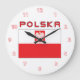 Bandeira Do Falcão Polonês Com Relógio De Parede Da Polska. Mostre o seu orgulho polonês com esta bela imagem da bandeira polonesa vermelha e branca com a palavra Polska acima da bandeira.