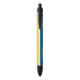 Caneta com bandeira da cidade de Mesa, Arizona; bandeira amarela e azul com ilustrações estilizadas do deserto, cacto e sol ascensão