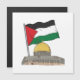 A bandeira da Palestina acima do Domo do Rochedo sobre um fundo branco e atrás da frase "Palestina Livre"