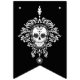Esta bandeira chique assustador da estamenha caracteriza uma mensagem preto e branco do feliz aniversario, flanqueada pelos crânios ornamentado do açúcar do damasco - excelente para um gótico, dia do morto ou partido temático do Dia das Bruxas