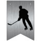 Se você tem um homem em sua vida que vive e respira o hóquei então esta bandeira do aniversário é a perfeita toca ao partido. Esta bandeira do hóquei é o fósforo perfeito a nossos convites temáticos do aniversário do hóquei. Nenhuma matéria a idade do menino do aniversário um o aniversário hóquei-temático fará uma indicação. As características de design um jogador de hóquei preto da silhueta em um fundo de prata do cromo.