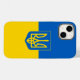 Caso do iPhone 14 com a bandeira da Ucrânia, uma bandeira azul e amarela com o casaco de armas ucraniano (emblem) com um tridente no centro