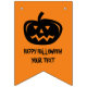 O costume cinzelou as bandeiras principais da bandeira da estamenha do partido do Dia das Bruxas da abóbora. Cara alaranjada e preta da abóbora que cinzela o design com mensagem de cumprimento personalizada. Fontes assustadores do partido e acessórios de DIY para a noite e a doçura ou travessura felizes do Dia das Bruxas. A decoração do divertimento para a casa, escritório, empresa, loja, loja, evento da surpresa, aniversário, casamento, chá de fraldas, housewarming, aniversário, celebrações, recolhimentos, reunião, partidos que do traje etc. adicionam seu próprio texto a este fá-lo você mesmo modelo. Modelo da tipografia do assombro. Faça suas próprias bandeiras em uma corda. Agradável para miúdos e adultos. Mude a quantidade para obter o preço com desconto maioria barato.