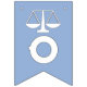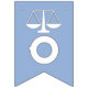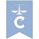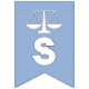Parabéns de licenciatura em direito criativo decor para novo advogado com escalas de justiça design em fundo azul claro.