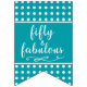 Este fabuloso 50 e fabuloso Bunting/Banner seria perfeito para decorar seus espaços ao celebrar o seu ou o 50º aniversário de alguém amado. São fontes modernas e belas bolinhas brancas em turquesa são definitivamente chicas e clássicas! #50andfabulous#quinqutyandfabulous#50º aniversário#50º aniversário