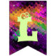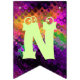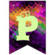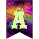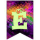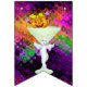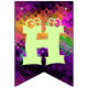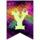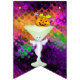 Adicione um toque decorativo festivo a toda a sala, ou mesmo fora, durante seu cocktail do Dia das Bruxas com esta bandeira brilhante da estamenha do partido. Duas bandeiras contêm a abóbora perniciosa que senta-se em um vidro de cocktail verde pálido com um fantasma bonito na haste. As outras bandeiras dizem o Dia das Bruxas feliz na rotulação verde-clara. Todas as bandeiras têm um contexto de luzes de giro coloridas. O texto em bandeiras pode ser personalizado usando o modelo fornecido. As bandeiras da estamenha podem ser usadas por anos para decorar seus partidos do Dia das Bruxas.