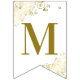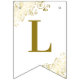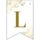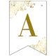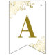 Estas lindas bandeiras são a adição perfeita à decoração do seu casamento. Eles apresentam um design simples, mas elegante, com texto dourado sobre fundo branco, com filigrana floral ou caramujos e espirais decorando os cantos. As bandeiras são projetadas com uma letra em cada bandeira, soletrando os nomes do casal, mas você pode personalizá-las para ler o que quiser.