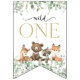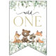 Adicione um toque pessoal à sua celebração de aniversário com estes itens de na moda e festa memoráveis! Design apresenta animais florestais (urso, raposa, guaxinim, fawn) e verde sobre fundo branco.