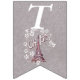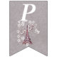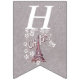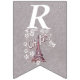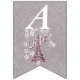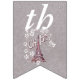 Esta bandeira moldada com banner de aniversário feliz é uma cinza clara com uma ilustração da torre Eiffel na França cercada por flores margaridas brancas com o texto Oh, Paris. Personalize o ano de aniversário com os modelos.