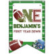 Brigue o seu primeiro aniversário de futebol com esta fofoca de marco fofinha! Patternado com a bola de aquarela, capacete e tipografia fofa no primeiro ano para baixo. Cada modelo de sinalizador está pronto para usar para adicionar suas fotos que você tem espaço para catorze fotos diferentes. Vamos comemora o primeiro aniversario do bebê! Excelente para uma primeira festa de aniversário com tema de futebol para um rapaz ou uma rapariga. Localizar itens totalmente personalizáveis correspondentes no meu compro.