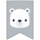 Este design apresenta um ursinho polar bonitinho com o título "Feliz Aniversário" em cinza estilo de fonte sans serif moderno em fundo de cinza de luz.