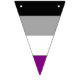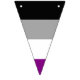Party bunting banner with asexuality flag with rainbow stripes of black, gray, white and purple; ace pride design