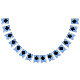 Decoração de festa de formatura com design clássico de chapéu de formatura preto e borla dourada em fundo azul claro.