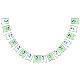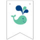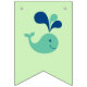 Uma faixa de festa de aniversário branca projetada para crianças, com uma baleia divertida e escutando em cada painel. A baleia é uma mistura vibrante de tons verdes e azuis, com um corpo liso e arredondado e uma expressão alegre. A água é pulverizada do seu sangue em gotículas curvas e cartoonizadas, acrescentando um elemento dinâmico e divertido ao design.