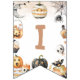 Comemore o seu primeiro aniversário de abóbora com esta adorável faixa do tema do Dia das Bruxas. Projetado com fantasmas bonitos, abóboras, teias de sopa, e detalhes festivos, ele faz o cenário perfeito para a festa do seu bebê. Excelente para operações fotográficas, mesas de sobremesa ou como decoração de festas de declaração. Junte-se aos convites correspondentes, aos cartões de agradecimento e aos guardanapos para uma visão completa.