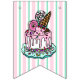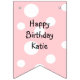 Rosa Pálido, Verde Mint, Bolinhas, Bolo de Mão Branca desenhado, banner de aniversário da menina. Apenas personalize-o mudando o nome em cada bandeira.