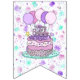Bandeirinha Banner de aniversário feliz roxo e rosa