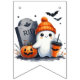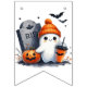 Este beliche é a decoração perfeita para uma festa de Halloween. Há 13 fantasmas brancos diferentes, alguns pedalando, alguns truques ou tratando com jack ou lanternas, alguns vestidos com seus melhores vestidos e chapéus e, claro, um no cemitério! Diz BOO no meio.