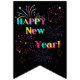 Este banner de bunting apresenta as palavras "Feliz ano novo" em uma fonte impressão única/negrito com letras coloridas diferentes, além de fogos de artifício e streams de confetti neste tema e estilo de Anos novos. Todos os banners têm impressão frente e verso em solteiro, segura, feita com poliestireno plástico resistente e a corda plástica espessa tem (16) bandeiras de 5,5" x 8" em uma corda longa de 6'.
