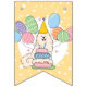 Faça o seu aniversário especial com o nosso adorável design para cão com um chapéu de festa e balões coloridos.