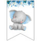 "Bebê Bem-vindo" bandeiras azuis e brancas excelentes para decorar um chá ou borrifo de um bebê temido por elefante.