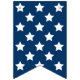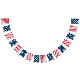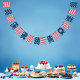 A faixa de comemoração do Dia da Independência na moda para o seu partido Quarto de julho inclui padrões alternados de estrelas e faixas em cores vermelhas, brancas e azuis da bandeira americana.