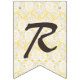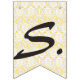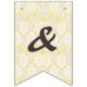Banner russo de bunting chic, com gráficos de um olhar de burlap e um rendas amarelo e branco. Grandes girassóis amarelos decoram cinco das bandeiras. O texto Sr. A Sra. decora as bandeiras que parecem herdadas no meio. Excelente para a sua recepção de casamento ou janto de ensaio.