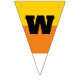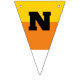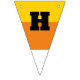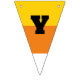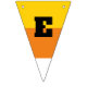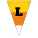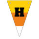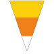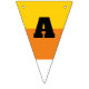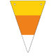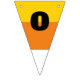 Estas peças de reposição em forma de triângulo têm listras laranja, amarelas e brancas para que pareçam pedaços de milho doce. Cartas negras explicam a mensagem: FELIZ HALLOWEEN.