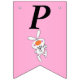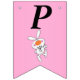 Bandeirinha Cartoon branco de aniversário coelho rosa quente