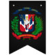Banner de bunting do partido com o emblema nacional da República Dominicana; design azul, vermelho e branco