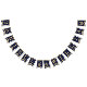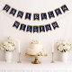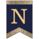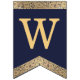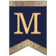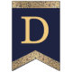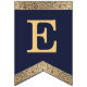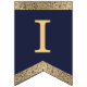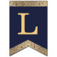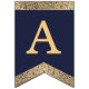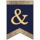 Uma faixa de bandeirolas com um ar vintage, adequada para um casamento com cores de casamento azul-marinho e dourado.