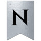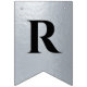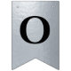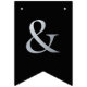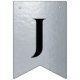 Uma faixa de bandeiras para um casamento com cores negras e prateadas, com as palavras "Sr. & Sra." e o nome da família do novo casal e 3 corações. O texto encontra-se em bonés pretos sobre o fundo falso de folha prateada, os corações e as ampersas são folhas falsas de prata sobre fundo preto. Apropriado para 7 letras como Johnson (o padrão) ou Jackson.