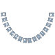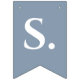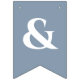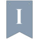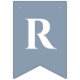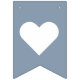 Uma simples faixa de bandeirolas para um casamento dusty blue, com as palavras "Sr. & Sra." e o sobrenome do novo casal e dois corações, tudo em branco sobre fundo dusty blue.