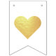 Uma simples bandeirolas para uma festa de casamento, com as palavras "Sr. & Sra." e o nome da família do novo casal e 3 corações. O texto está em letras maiúsculas brancas em fundo de falso ouro, os corações e o e comercial são em falso ouro em fundo branco. Apropriado para nomes de 7 letras como Silva (o padrão) ou Barros.