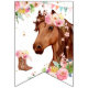 Bandeirinha Cavalo Feliz Aniversário Rapariga Rosa Saddle Pony