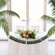 Para sempre começa agora. A fonte branca moderna e as palmeiras tropicais sobressaem contra um fundo escuro que alude a um céu estrelado noturno. O texto é editável para qualquer evento usando o modelo simples. Confira a loja da EmmyINK para suprimentos e decoração adicionais coordenados!