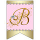 Bandeirinha Chá de Bebê Pérolas Bailarina Rosa e Dourado