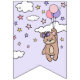 Bandeiras de acolhimento de bebês, rosa e roxo, para chás de fraldas de ursos. Garota rosa chá de fraldas urso bem-vinda bandeiras de bebê com ursos bonitos segurando balões em roxo e rosa.