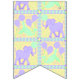 Adicione algo fofo à sua decoração de chá de fraldas neutra com este adorável elefante lilás roxo. É uma faixa de bandeiras de bunda BABY com um tema de circo. Cada bandeirola tem um impressão alado com um elefante roxo balançando uma bola verde de menta e um selo verde de menta com uma bola roxa leve e pequenos balões lilás. As bandeiras do centro neste banner de bandeiras de chá de fraldas incorporam círculos brancos e letras roxas profundas que soletram É UM BEBÊ. Fácil de personalizar, as últimas quatro letras podem ser personalizadas para que seu banner de chá de fraldas roxo, branco, verde e amarelo leia "IT S A GIRL" ou "IT S A BOY!" como você quiser.