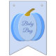 Este fantástico bunting de Chás de fraldas apresenta uma imagem de arte digital de uma abóbora azul giro com 3 tons de azul diferentes ficando mais escuros em direção às bordas da abóbora. Há um pé verde anexado ao topo. Um design perfeito para celebrar um bebê, especialmente no Dia de Ação de Graças. Há texto personalizado para que você possa revelar o gênero do bebê e incluir uma mensagem.