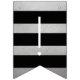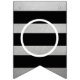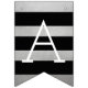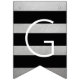 Stylish graduation party bunting banner features "Congratulations!" with grad cap, stripe, and polka dot pattern details. Black, white, silver, and gold color scheme.