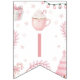 Sweet “Cookies & Cocoa” birthday banner featuring soft pink cocoa art and pastel winter details. Perfect for decorating a cozy birthday celebration and creating a warm, charming party atmosphere. Editable and printable bunting style.